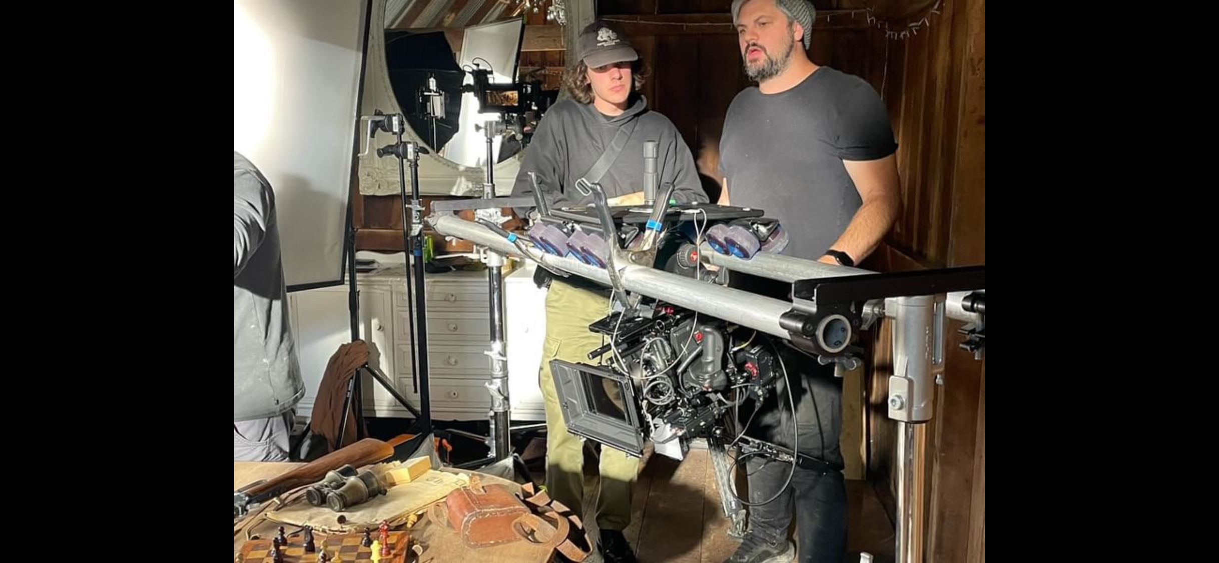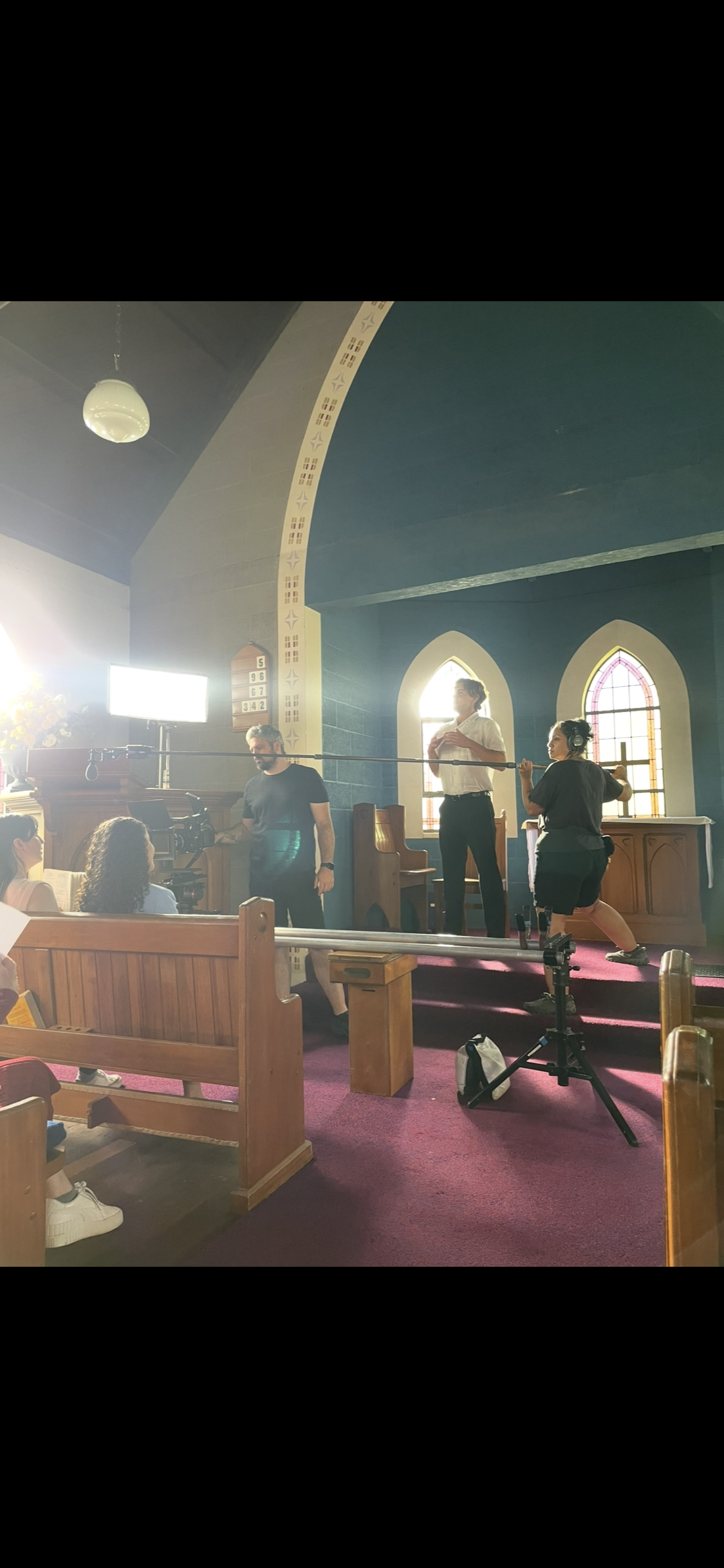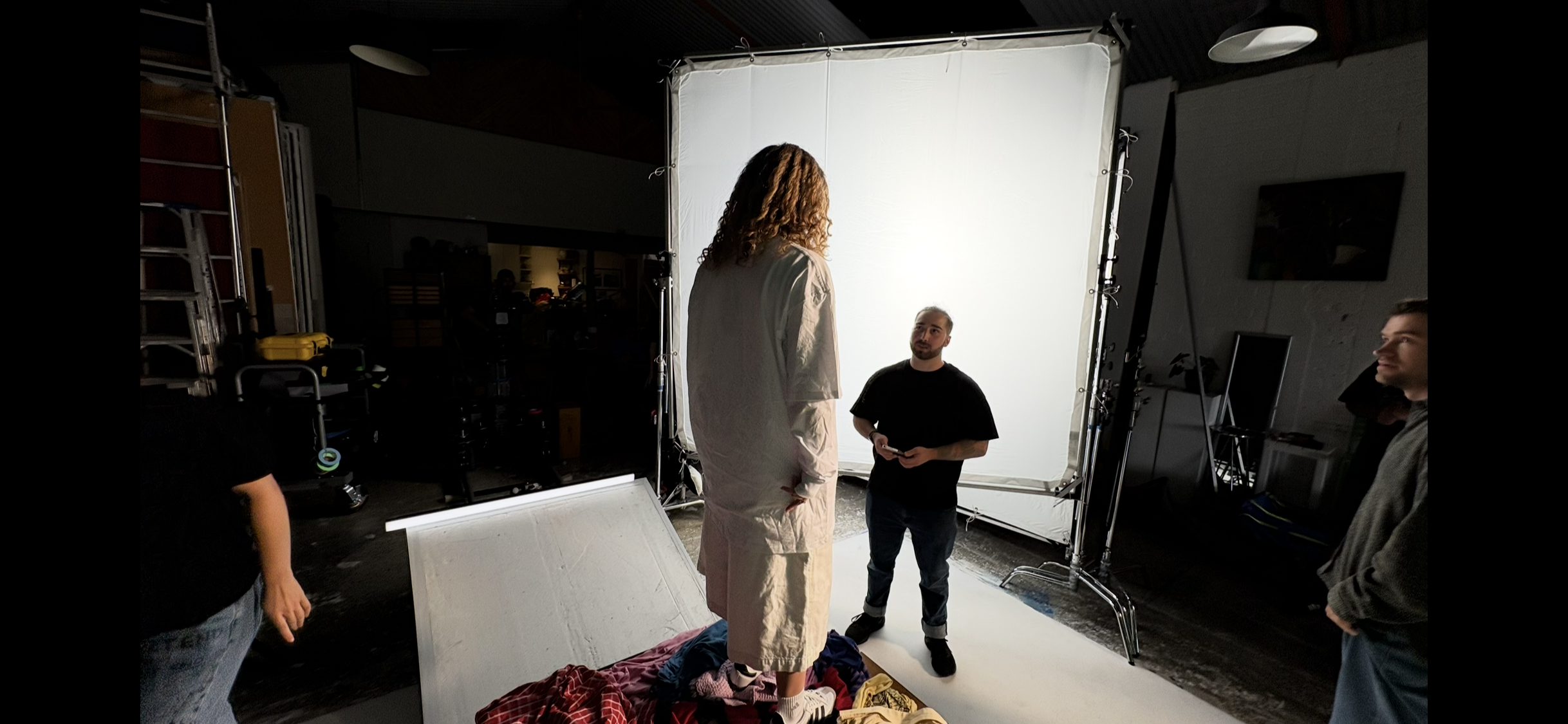 Producer and 1st AC sitting in for my lighting adjustments