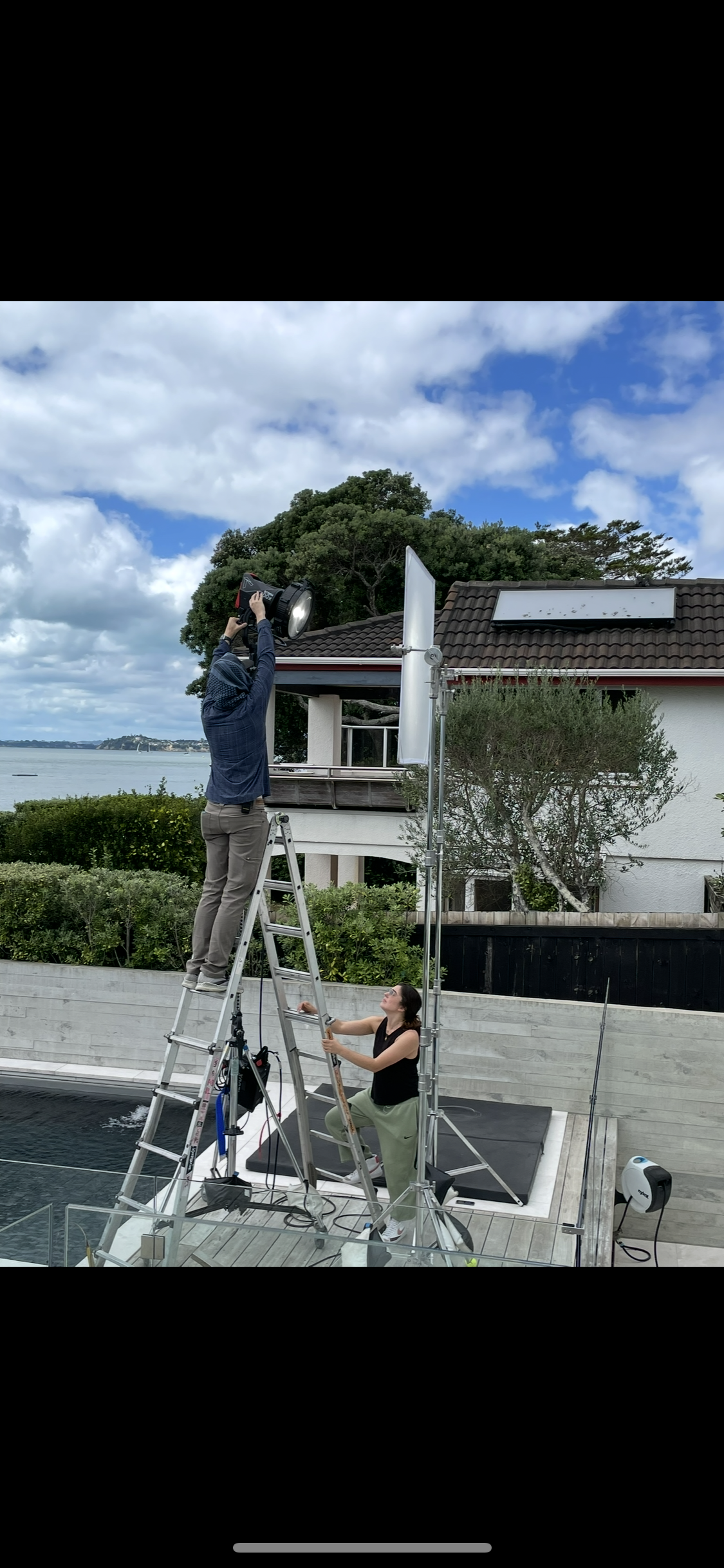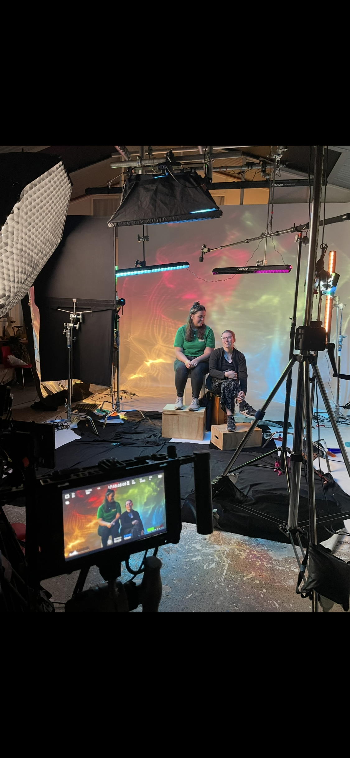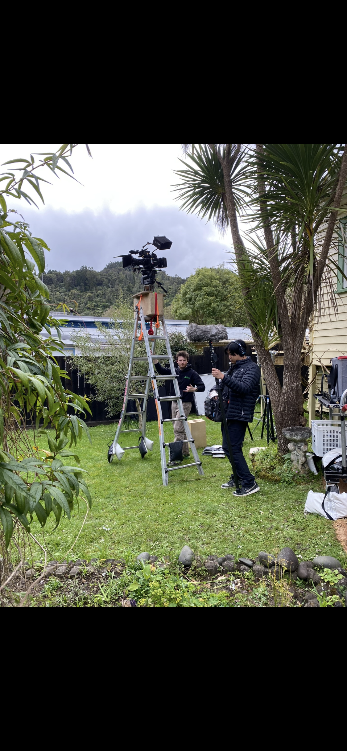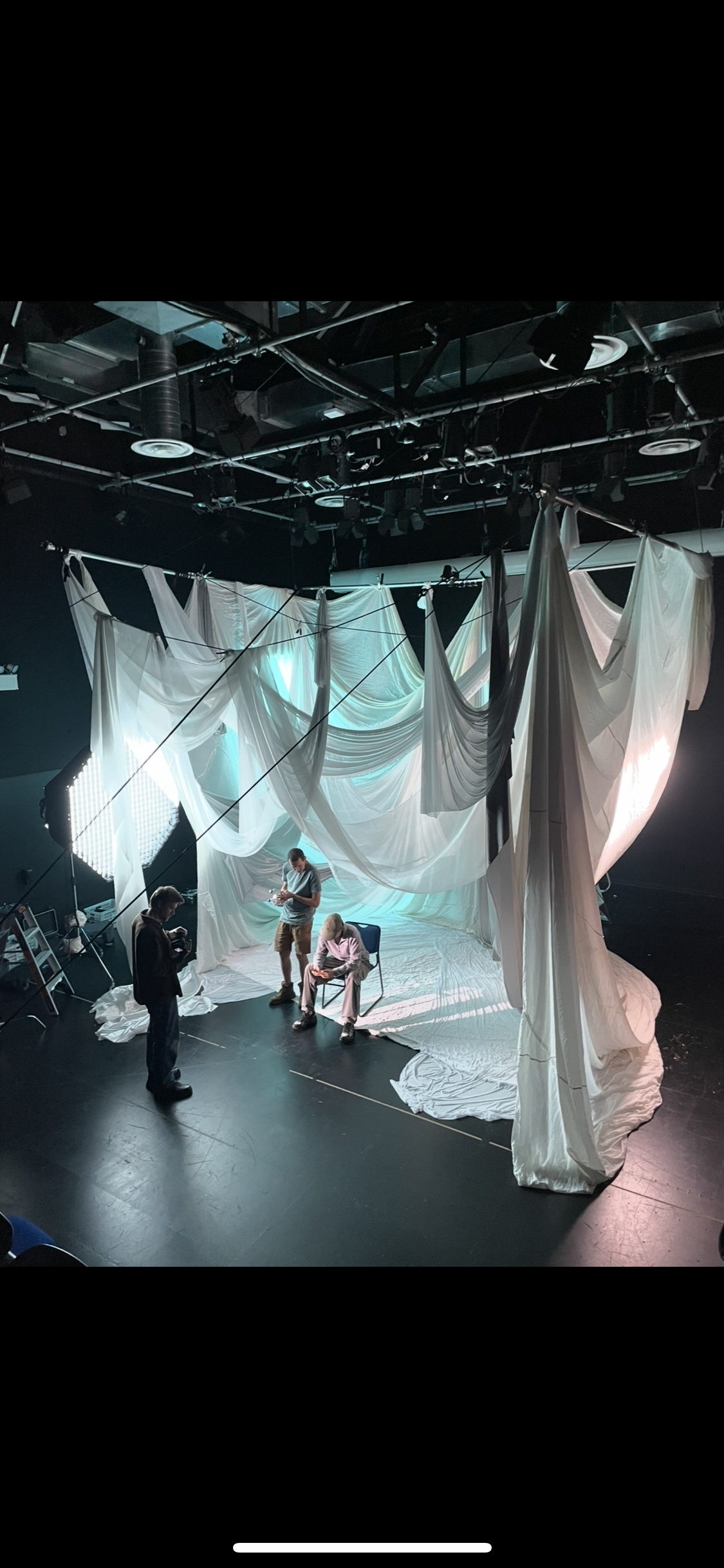 Producer and 1st AC sitting in for my lighting adjustments